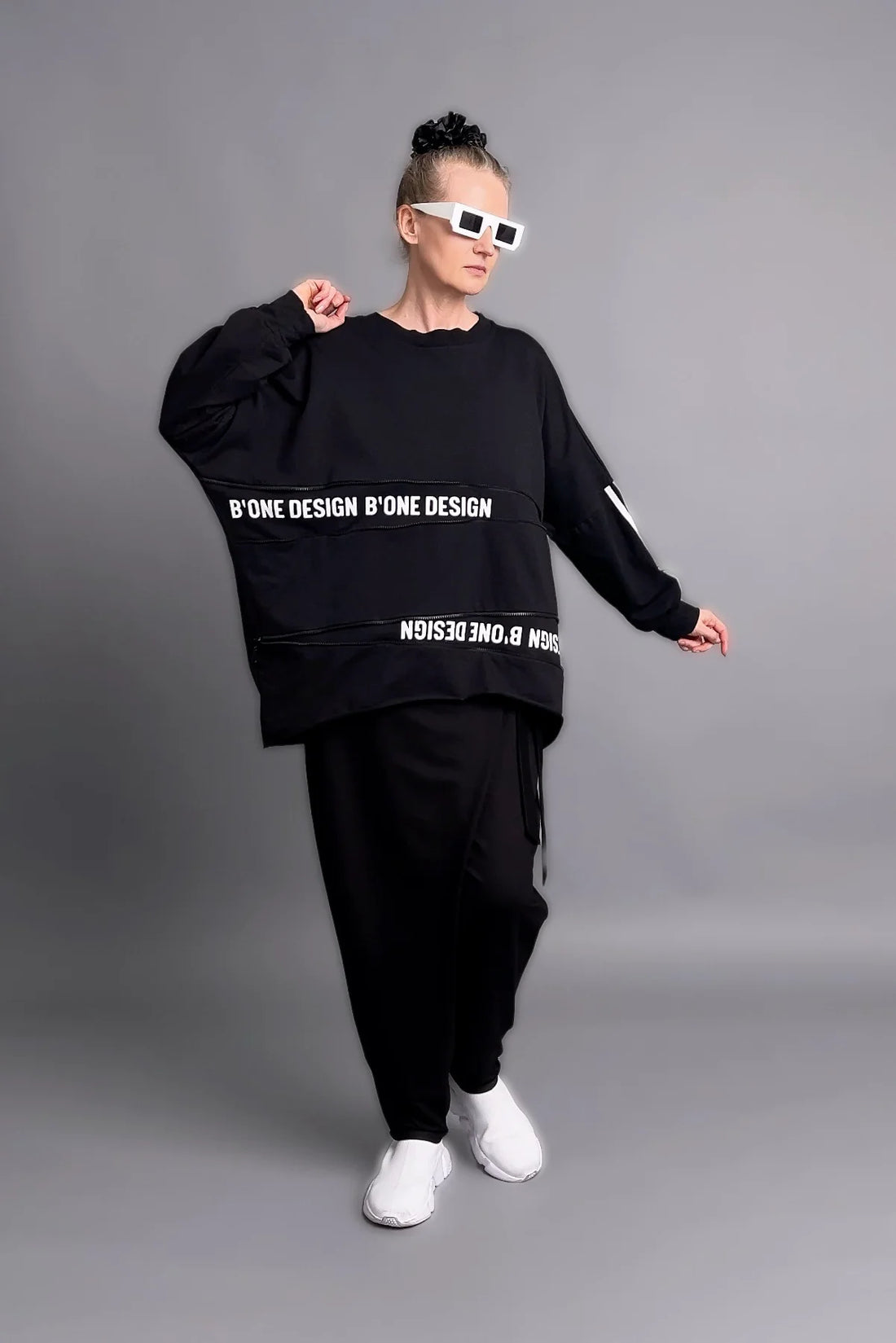Oversize Sweatshirt mit Schriftzug-Design in Schwarz und Weiß aus softem French Terry