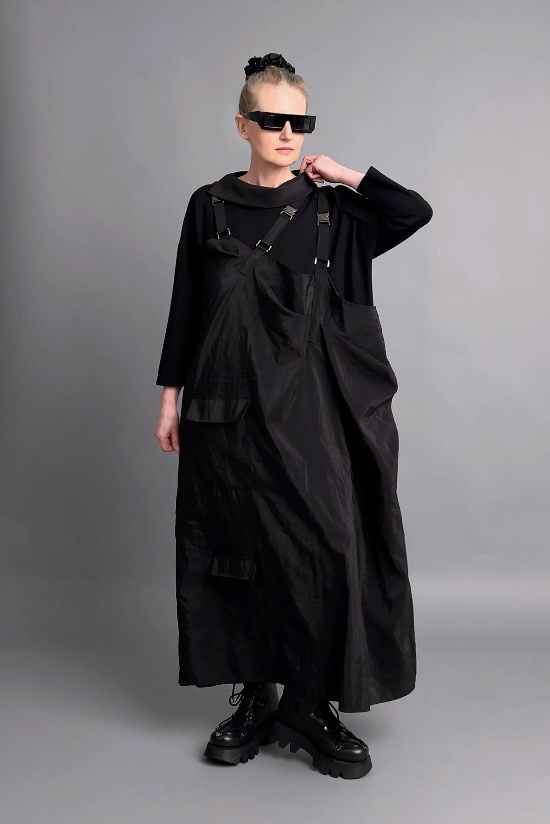 Ein ausdrucksstarkes Statement-Kleid für alle, die Avantgarde lieben: Dieses schwarze Oversize-Kleid von iZAR überzeugt durch...