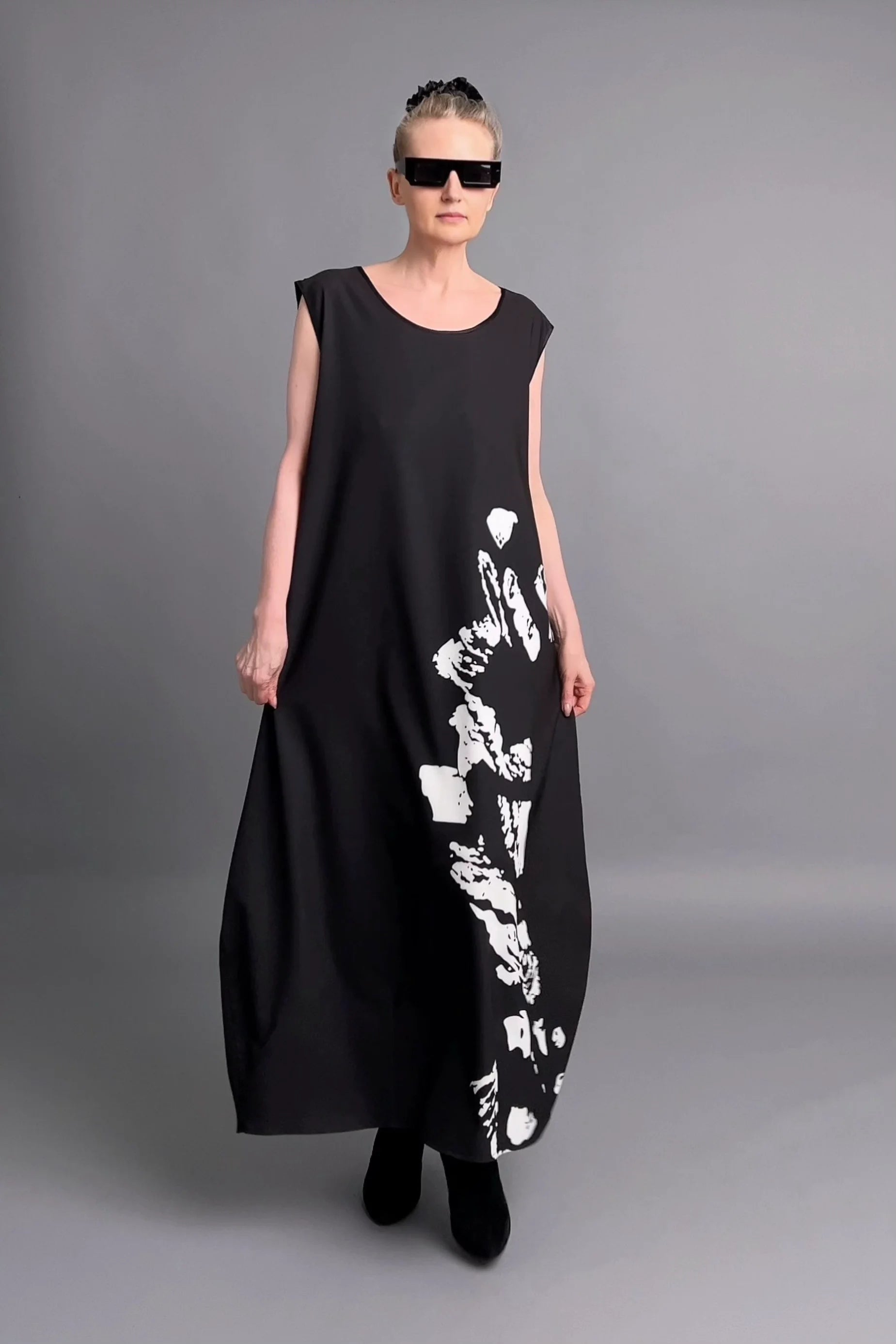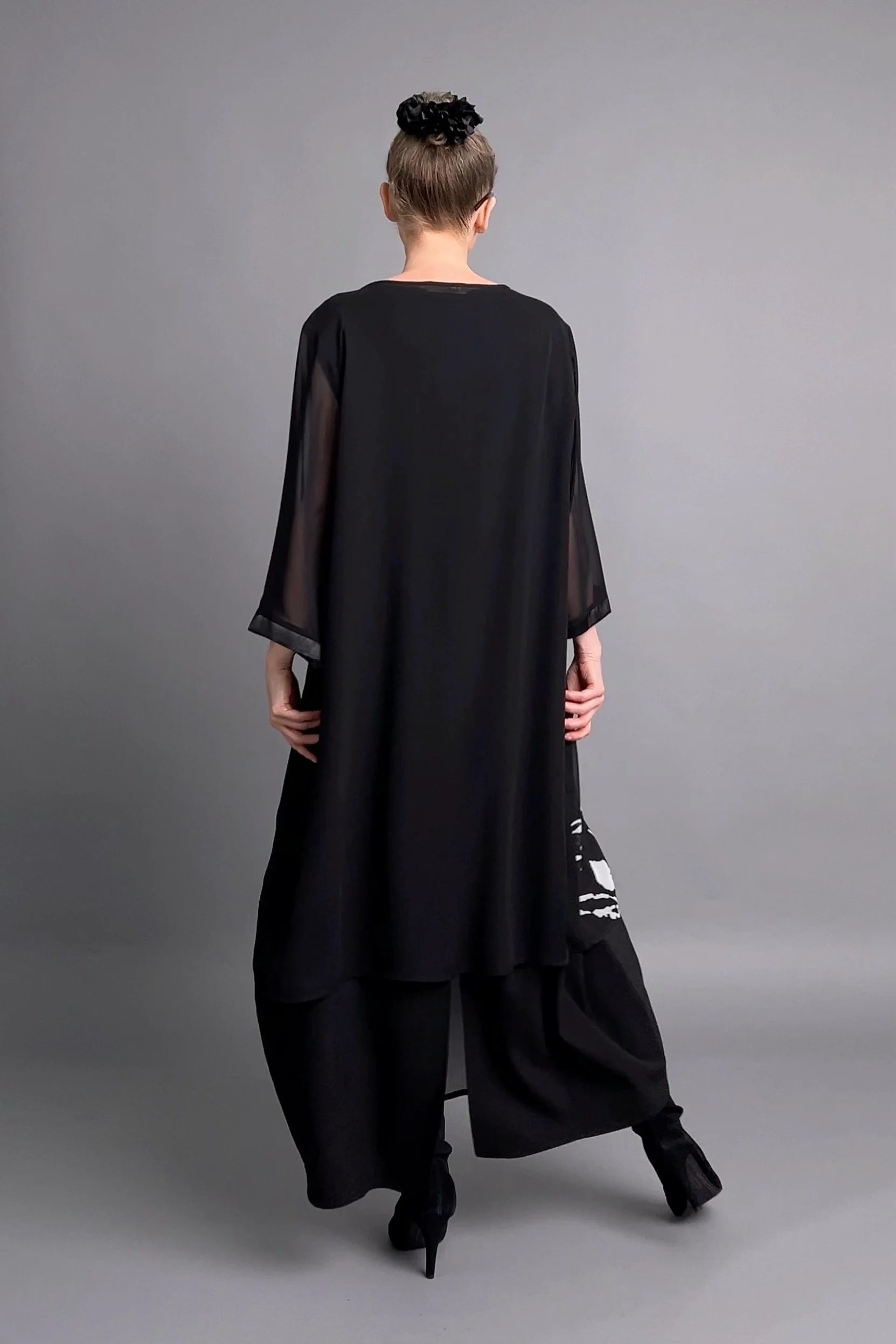 Cadrelli Zweiteiler Kleid mit abstraktem Print & transparenter Überwurf schwarz-weiß