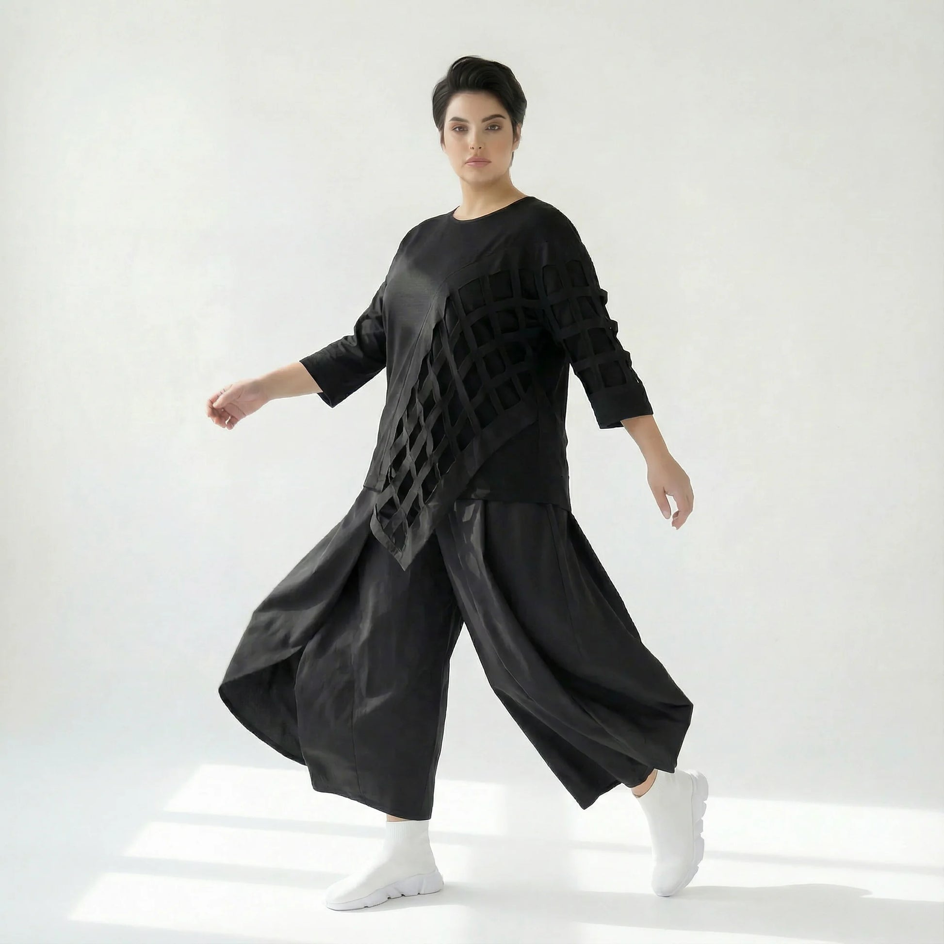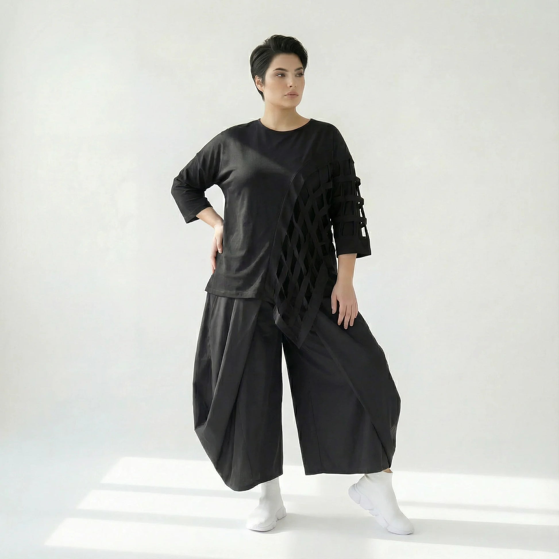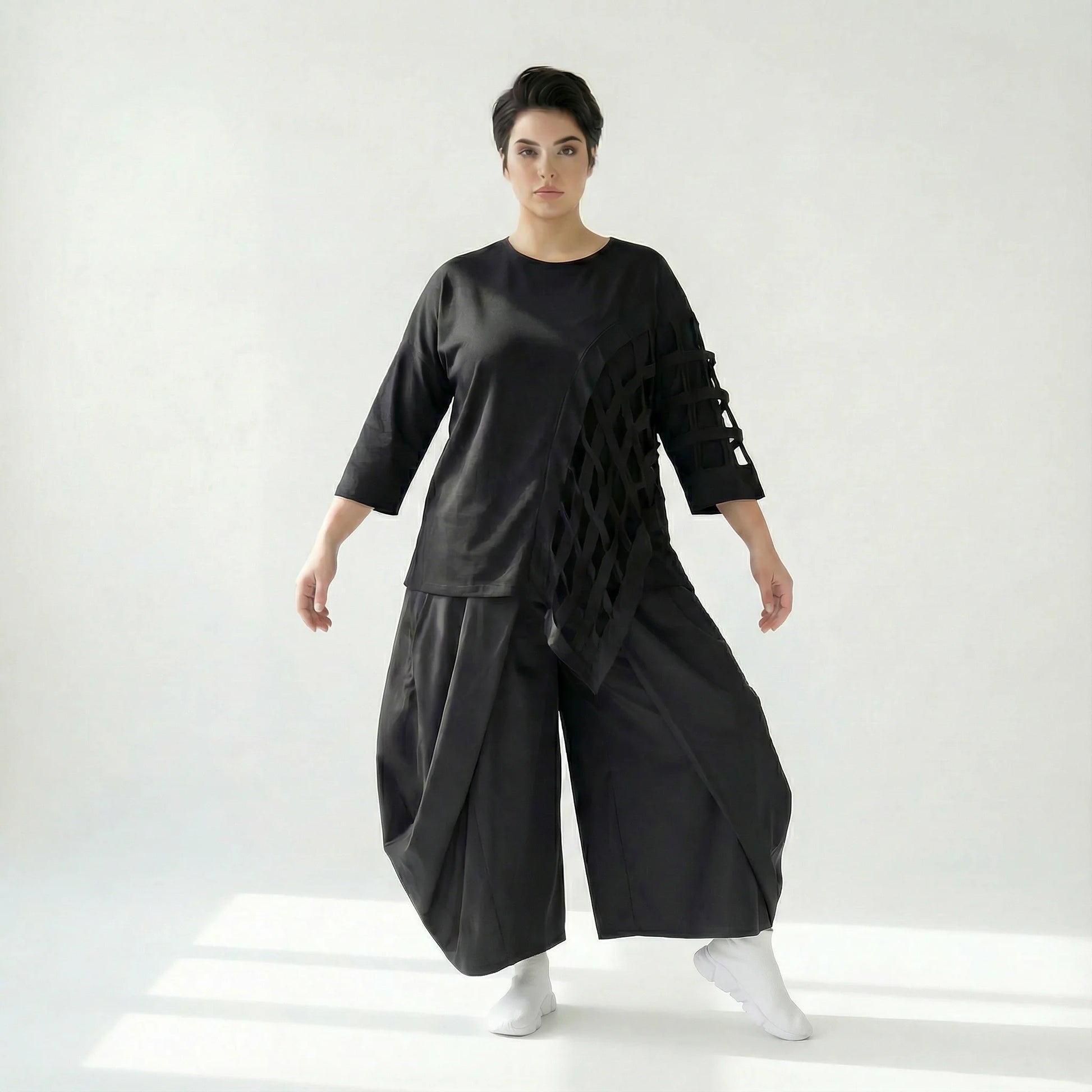 - Mit langen Oversize-Tuniken oder asymmetrischen Shirts für einen avantgardistischen Lagenlook