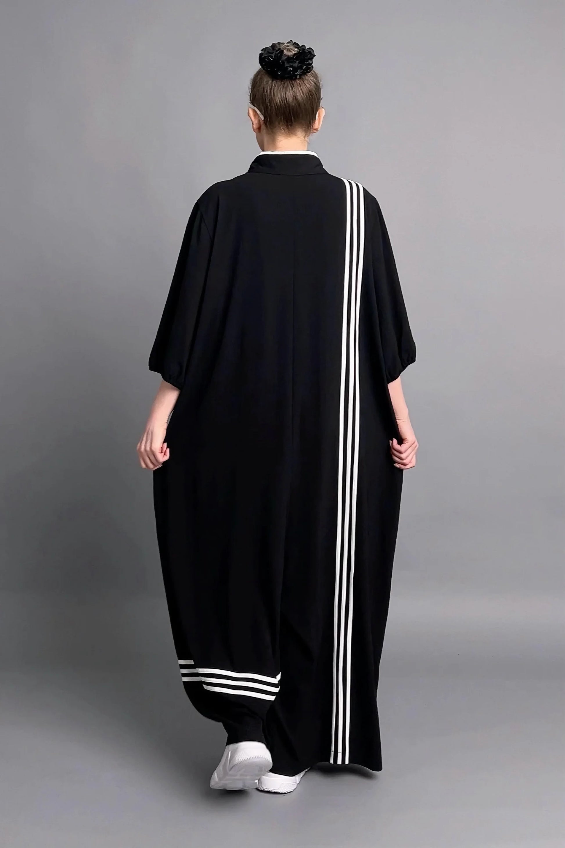 Maxlive Oversize Jumpsuit Schwarz mit weißen Streifen und Zipper im sportlichen Design