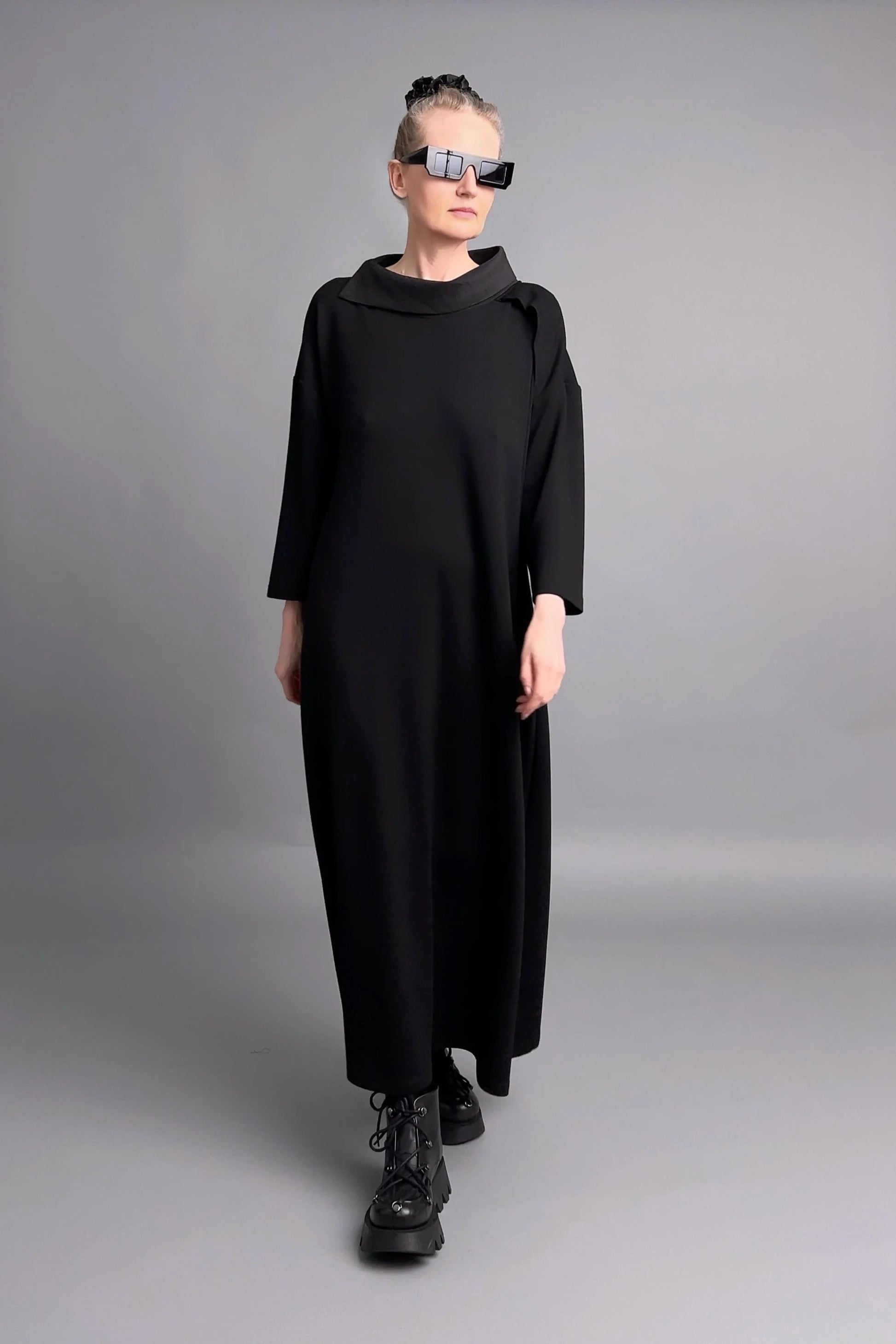 Ein expressives Duo im avantgardistischen Lagenlook: Dieses 2-teilige Kleid von Red Corner kombiniert ein fließendes Unterkleid aus weichem Jersey mit einem spektakulären Oberkleid aus strukturierter Crash-Popeline. Das Spiel mit Materialien, Volumen und asymmetrischen Details macht diesen Look zum Statement für Individualistinnen.